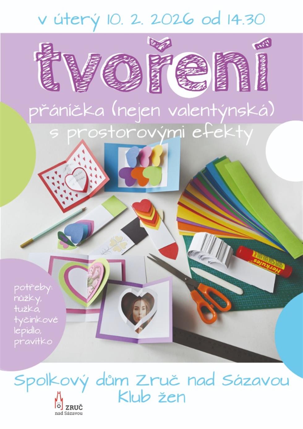 Vyrábět se budou přáníčka s prostorovými efekty. S sebou si vezměte pravítko, tužku, tyčinkové lepidlo a nůžky.